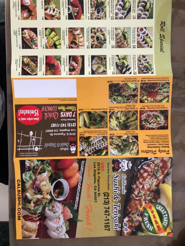 Welcome to California Sushi & Teriyaki, a culinary gem nestled at 2518 S Figueroa St, Los Angeles. This Japanese restaurant offers a delightful array of menu items that cater to both traditional and adventurous palates. From savory Teriyaki Plates to flavorful Tempura Specials, each dish is crafted with quality ingredients to ensure an unforgettable dining experience. The Power Roll and USC Roll are particularly noteworthy, as they have garnered rave reviews for their fantastic flavors and ample portions.